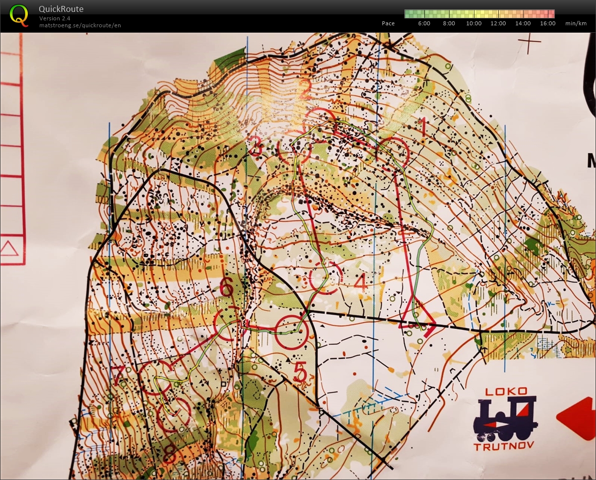 Tohle byla asi ta lepší část, ale i tady bylo dost prostoru ke zlepšení - zbytečný oblouček na K1, návštěva hořejšího kamene u K6, zbrklé vyběhnutí za nějakým Turnovákem na K7 a následná chyba, kdy mě zachránily ty dva stromy. Zbytek sice celkem čistě, ale možná o trochu pomaleji, než bylo nutné.